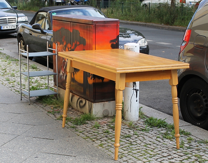 Aber auch die Stadreinigung jammert: Rund 5 Millionen Euro würden Jahr für Jahr ausgegeben, um illegale – und schon wieder das böse „Sp…“-Wort – Sperrmüllablagerungen zu beseitigen. Ein Grund mehr, auf die Einrichtungsangebote, die im Wortsinn auf der Straße liegen (oder stehen) einzugehen.