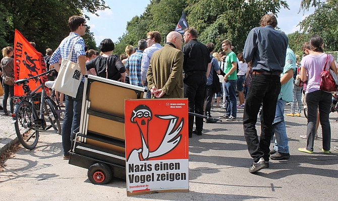 Allerdings mangelte es an Nazis Zuhörern: Erschienen waren nur 13 NPDler. Dass es überhaupt zur Zweistelligkeit reichte, war der Anwesenheit von Gastnazis aus Lichtenberg und dem Land Brandenburg zu danken.