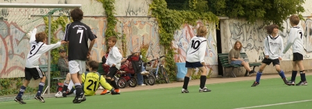Aber dann war es endlich soweit – das große Spiel des Tages konnte beginnen: Die Mütter gegen die Söhne. Lange Zeit hatten sich die weiblichen Elternteile der 1. F ja geziert. Und trainiert hatten sie dann auch nur ein einziges Mal – am Abend vor dem Spiel. Das konnte doch nicht gutgehen – oder?
