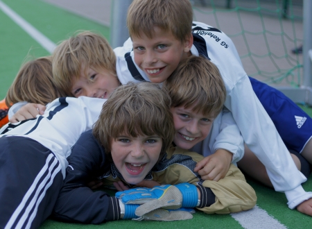 | Die Mannschaft war sich ihrer Stärken sicher – ganz selbstbewusst verzichtete sie darauf, ihren Stammtorhüter Mathis zwischen die Pfosten zu stellen: Der stürmte diesmal über das Spielfeld. |  |