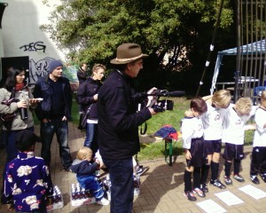 Während des Turniers lief ständig ein Mann mit so einer Art Cowboyhut und einer Kamera unterm Arm über den Platz. Das war der Kameramann Christfried Hübner, der sich einfach mal so bereit erklärt hatte, die Filmaufnahmen für das Vorstellungsvideo zu drehen.