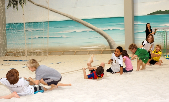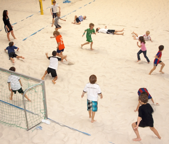 Und Sport gab es natürlich auch: Beach-Vollyball für die Großen und S(tr)and-Fußball für die Jungs.