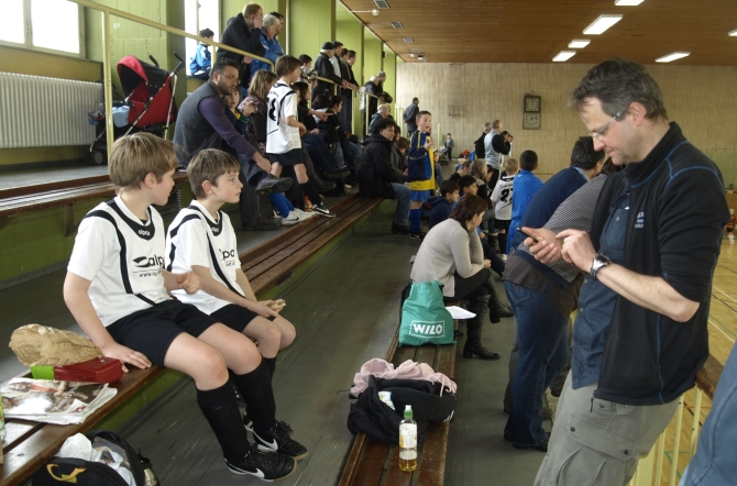Vielleicht ist man ja verwöhnt. Aber wann immer es ein von einem Verein ausgerichtetes Hallenturnier gibt, befindet sich an irgendeiner Ecke ein Buffet, an dem die Erwachsenen für kleines Geld Würstchen, Buletten und Kaffee erwerben und die Spieler sich mit ihren Hauptnahrungsmitteln Nougatbrötchen und Gummischlangen eindecken können. Der kleine Verkaufsstand wird in der Regel von den Eltern der Spieler des gastgebenden Vereins organisiert. Beim Turnier des Berliner Fußballverbandes (BFV) suchte man danach allerdings vergebens. Möglicherweise hat der BFV ja keine Eltern – und so war gut dran, wer sich seine Stullen samt Getränk in weiser Voraussicht mitgebracht hatte. Allen andern knurrte der Magen…