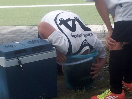 Erst wurde uns gesagt, dass die Spiele 20 Minuten dauern (sowieso schon hart bei 30 Grad) und dann merkten wir auch noch, dass einige nicht kommen konnten und wir leider keine Auswechselspieler hatten. So mussten wir bei über 30 Grad die ganze Zeit durchspielen.