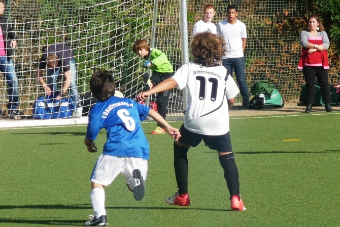 nenem Laufduell rauscht Simons Schuss knapp rechts vorbei, Leon trifft aus spitzem Winkel nur den Außenpfosten, ein satter Schrägschuss von Marc klatscht vom Innenpfosten zurück ins Spielfeld und schließlich setzt Severin einen Fernschuss auf die Latte.