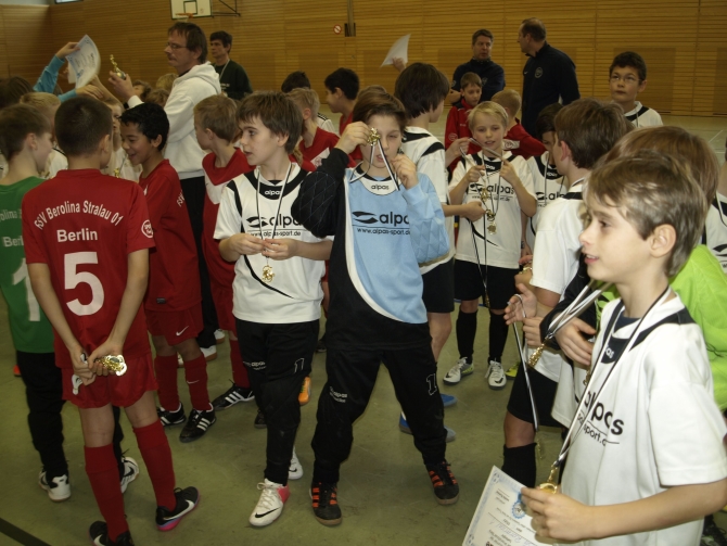 Wer übers Jahr an so vielen Turnieren teilnimmt, wie die Jungs von Teschsportplatz, muss natürlich auch mal selber eines veranstalten. Und so findet jedes Jahr im Januar in der Sporthalle des Oberstufenzentrums an der Hansastraße das Hallenturnier der SG Rotation Prenzlauer Berg statt. Sechs Mannschaften waren diesmal dabei – zwei davon stellten die Rotationer selbst.