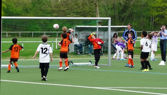 Schwarz-Weiss Spandau hieß der Gegner im Viertelfinale. Fast einen Kopf größer als die Jungs vom Teschplatz nutzten die Spandauer ihre körperliche Überlegenheit aus. Dennoch hielt Rotation gut mit, kämpfte um jeden Ball und erspielte sich immer wieder Torchancen. Schließlich wurschtelte sich der spätere Turniersieger mit einem 2:0 gegen unsere Jungs ins Halbfinale.