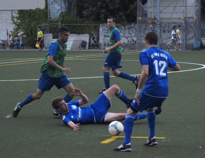 Der erste Treffer, ein direkt verwandelter Freistoß, schien die Rollenverteilung zu bestätigen: Hier Berlin-Liga – da Landesliga. Empor schien ungefährdet auf das Finale zuzusteuern.