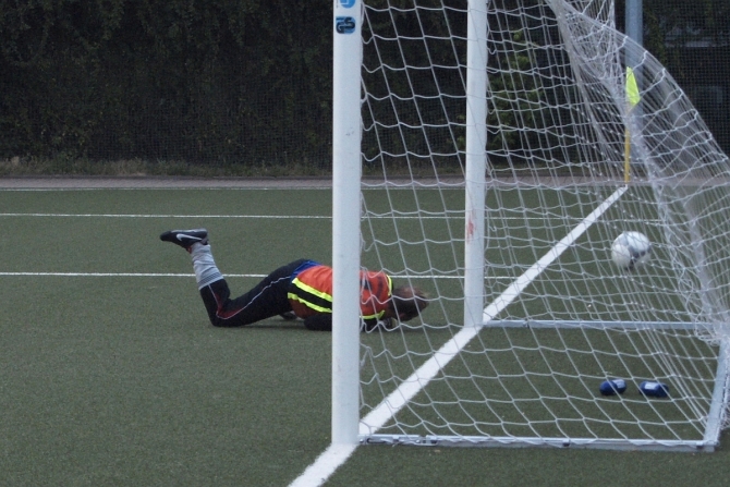 Kurz vor Ende der Spielzeit war jedoch auch Dietrich machtlos – ein Gewaltschuss aus 18 Metern Entfernung knallte ins rechte Dreiangel – 2:2.