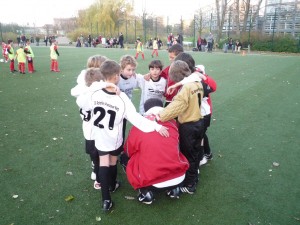 Nur einen Tag nach der Niederlage gegen Eintracht Südring traten die Kicker vom Teschsportplatz erneut an – zu einem Freundschaftsspiel gegen die 1. F-Jugend der SpVgg Tiergarten. Das nasskalte Novemberwetter vom Samstag war verschwunden, stattdessen herrschten an diesem Sonntagnachmittag Sonnenschein und fast frühlingshafte Temperaturen. Und genauso wie sich das Wetter von einem Tag zum anderen gewandelt hatte, so wollten nun auch die Rotationer das völlig daneben ge-