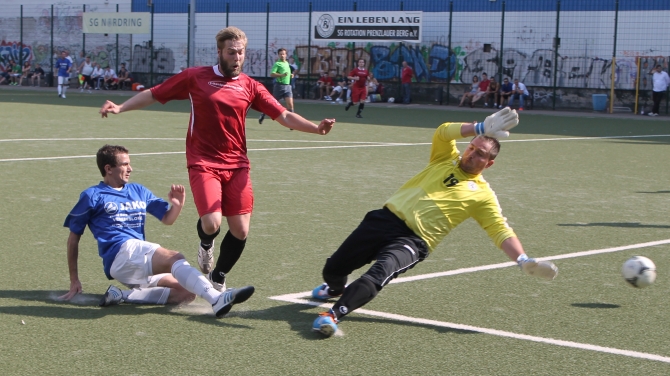 „Männer, aufwachen – das Spiel hat angefangen!“ Als dieser Ruf von Rotation-Trainer Olaf Seier über den Teschsportplatz schallte, waren bereits drei Minuten gespielt und die Prenzlauer Berger hatten bereits das erste Gegentor kassiert…