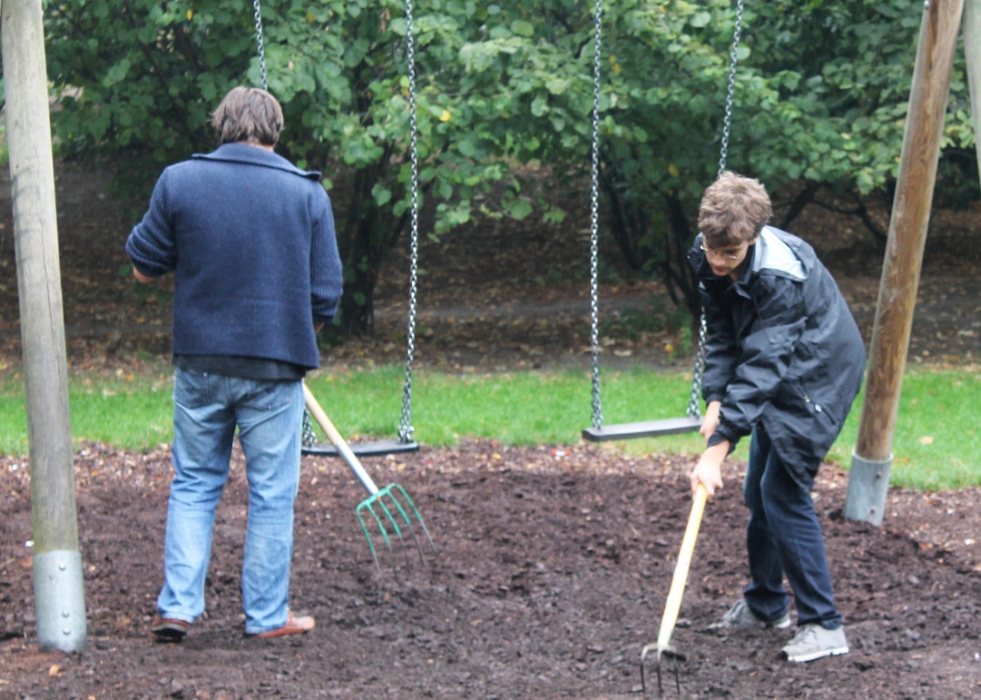Der Verein „Leute vom Teute e.V.“ kümmert sich seit Jahr und Tag darum, den Platz in Schuss zu halten. So werden dort Spielgeräte in Ordnung gebracht; Rasenteile, die durch vielen Besucher weggetreten wurden, neu ausgesät oder – wie erst vor einer Woche wieder – regelmäßige Arbeitseinsätze zur Grundsäuberung der Parkanlage organisiert.