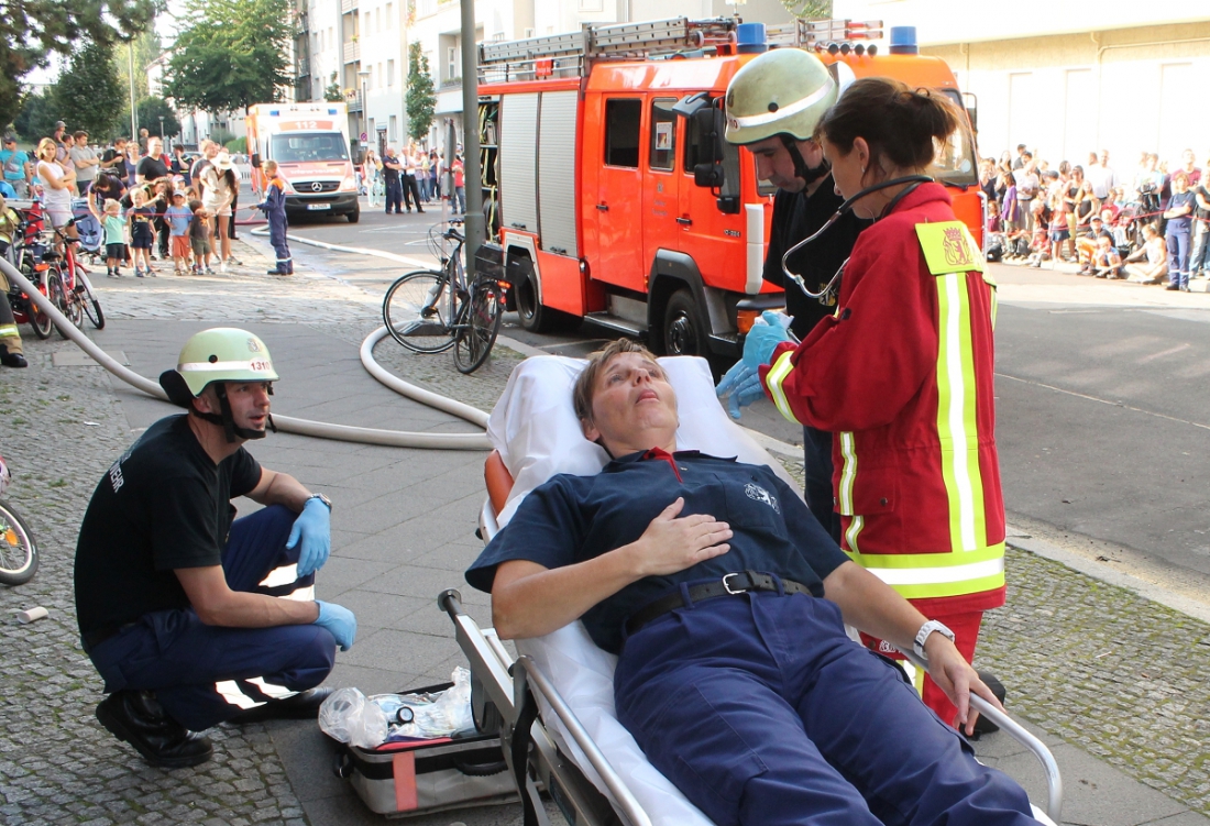 In der Fahrzeughalle der Feuerwache konnte allerlei allerei moderne Brandbekämpfungstechnik inspiziert werden und für die Kinder gabs wie immer das Highlight schlechthin: Mit Tatütata und Blaulicht eine Runde durch den Kiez.