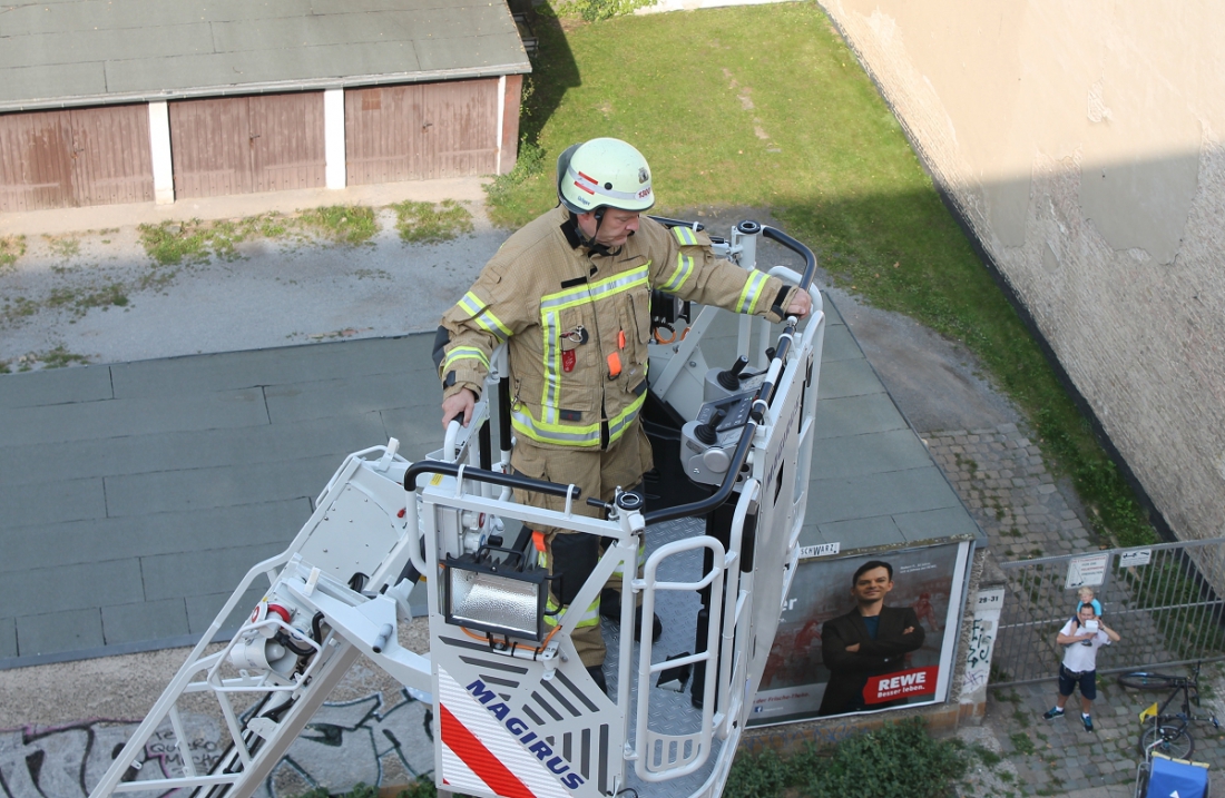 0001Wie vor zwei Jahren schon, wurde auch diesmal wieder eine dramatische Rettungsaktion von der Dachetage des benach-