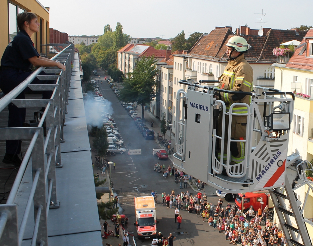 0001Wie vor zwei Jahren schon, wurde auch diesmal wieder eine dramatische Rettungsaktion von der Dachetage des benach-