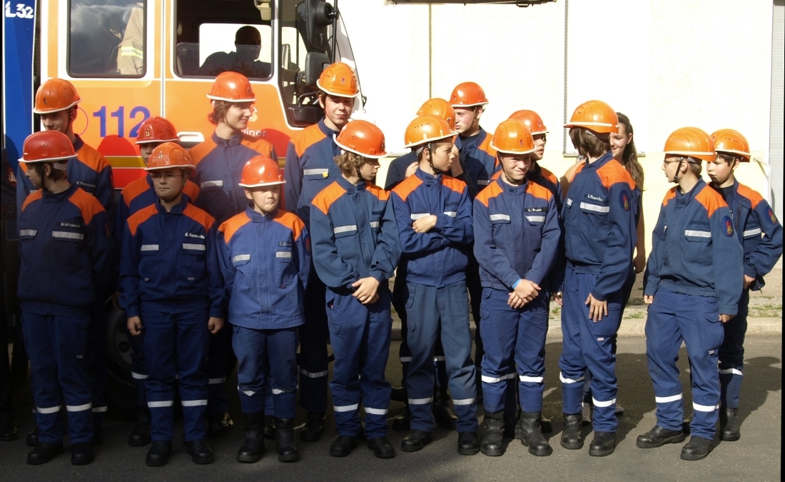 Auch die Jungs von der Jugendfeuerwehr zeigten etwas von dem, was sie bei den Kameraden in der Schieritzstraße so gelernt haben: Ein brennender Müllcontainer wurde im Handumdrehen gelöscht.