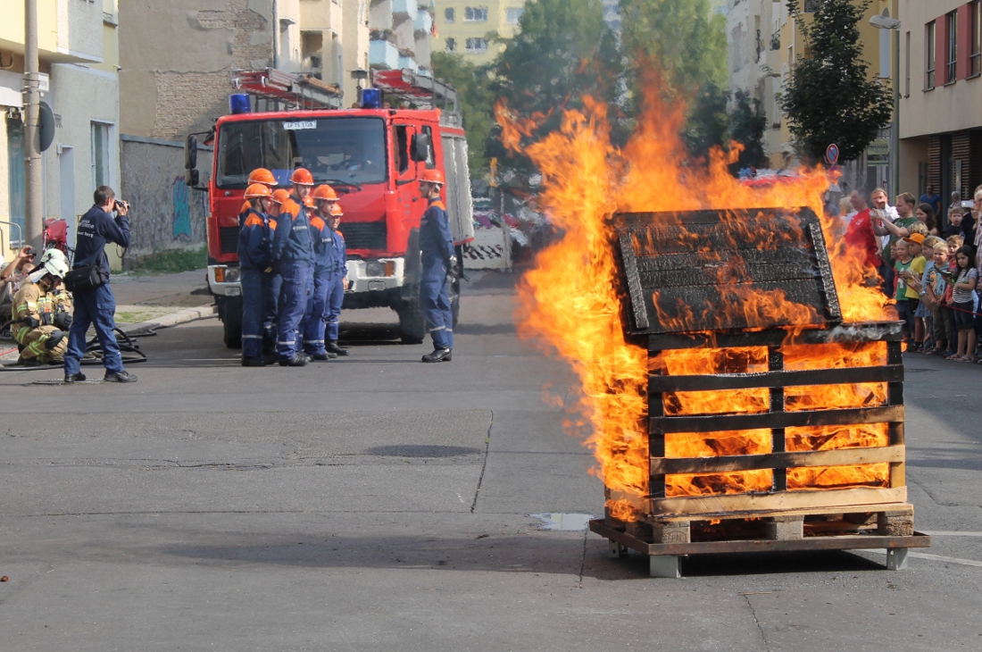 Klar, die Situation war nicht „echt“, sondern eine Vorführung der Jugendfeuerwehr am „Tag der Offenen Tür“ der Frei-