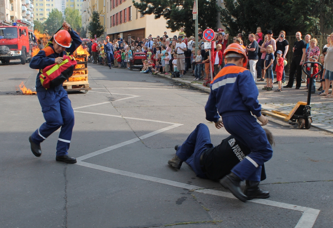 Klar, die Situation war nicht „echt“, sondern eine Vorführung der Jugendfeuerwehr am „Tag der Offenen Tür“ der Frei-
