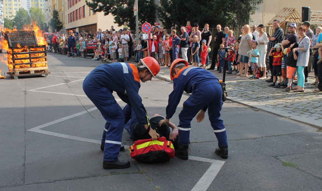 Klar, die Situation war nicht „echt“, sondern eine Vorführung der Jugendfeuerwehr am „Tag der Offenen Tür“ der Frei-