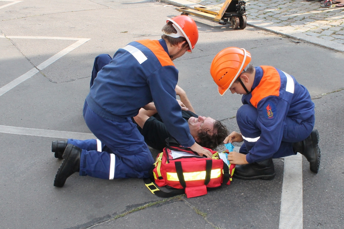 Klar, die Situation war nicht „echt“, sondern eine Vorführung der Jugendfeuerwehr am „Tag der Offenen Tür“ der Frei-