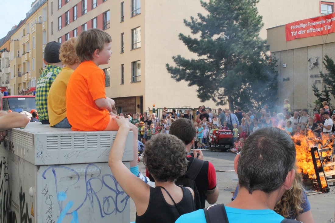 In der Fahrzeughalle der Feuerwache konnte allerlei allerei moderne Brandbekämpfungstechnik inspiziert werden und für die Kinder gabs wie immer das Highlight schlechthin: Mit Tatütata und Blaulicht eine Runde durch den Kiez.