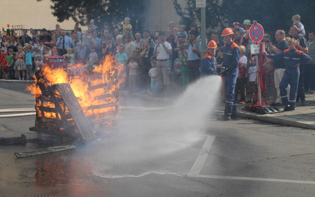 Klar, die Situation war nicht „echt“, sondern eine Vorführung der Jugendfeuerwehr am „Tag der Offenen Tür“ der Frei-