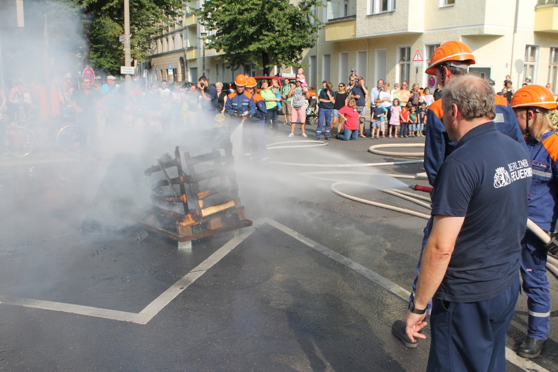 In der Fahrzeughalle der Feuerwache konnte allerlei allerei moderne Brandbekämpfungstechnik inspiziert werden und für die Kinder gabs wie immer das Highlight schlechthin: Mit Tatütata und Blaulicht eine Runde durch den Kiez.