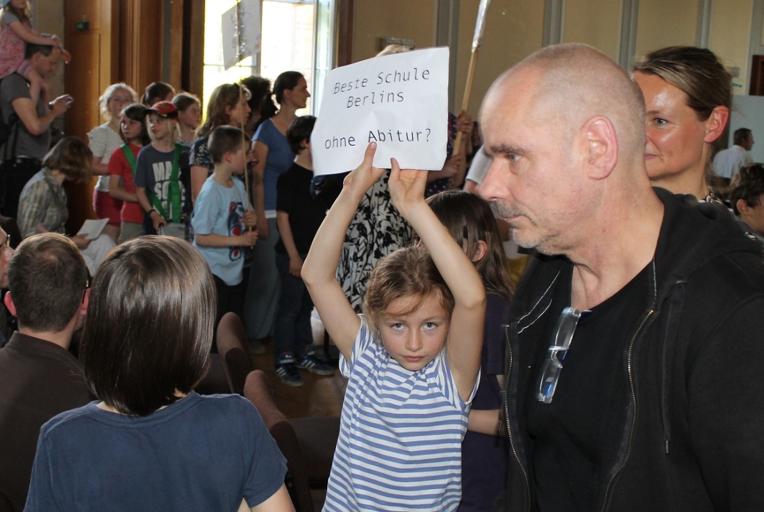 „Keine Räume, keine Räume“, lautete die Antwort von Senat und Bezirksamt auf die Forderung, nun endlich auch den letzten schritt zu gehen. Stattdessen bevorzugen die Verwaltungen eine Kooperation mit Oberstufenzentren, bei denen die künftigen Abiturienten dann untergebracht werden sollen.