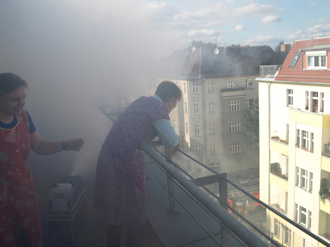 Die Vorführung eines Brandbekämpfungseinsatzes mit Personenrettung war der Höhepunkt des diesjährigen Tages der offenen Tür der Freiwilligen Feuerwehr Prenzlauer Berg.