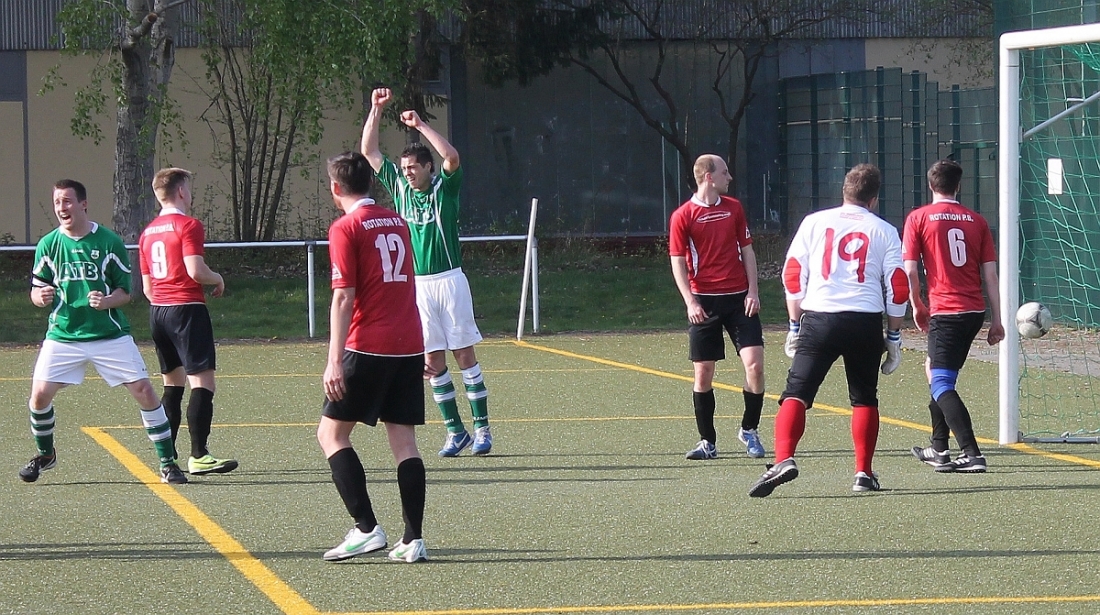 Die Gäste aus der Dunckerstraße hatte den Rückstand noch nicht richtig verdaut, da versenkte Philipp Eckardt einen aus rund 20 Metern Entfernung zum Tor getretenen Freistoß im Kasten der Rotationer (80. Minute).