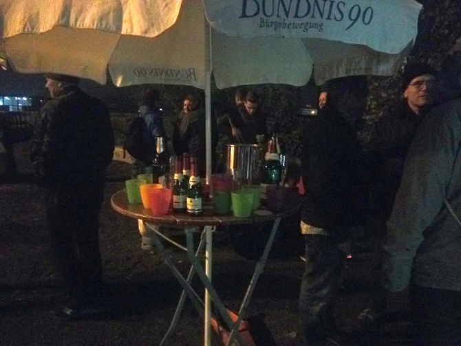 Auch SPD und Bündnisgrüne waren wieder mit ihren mobilen Glühweinschänken vor Ort – die Sozialdemokraten mit rotem, die Grünen mit grünem Gesöff.